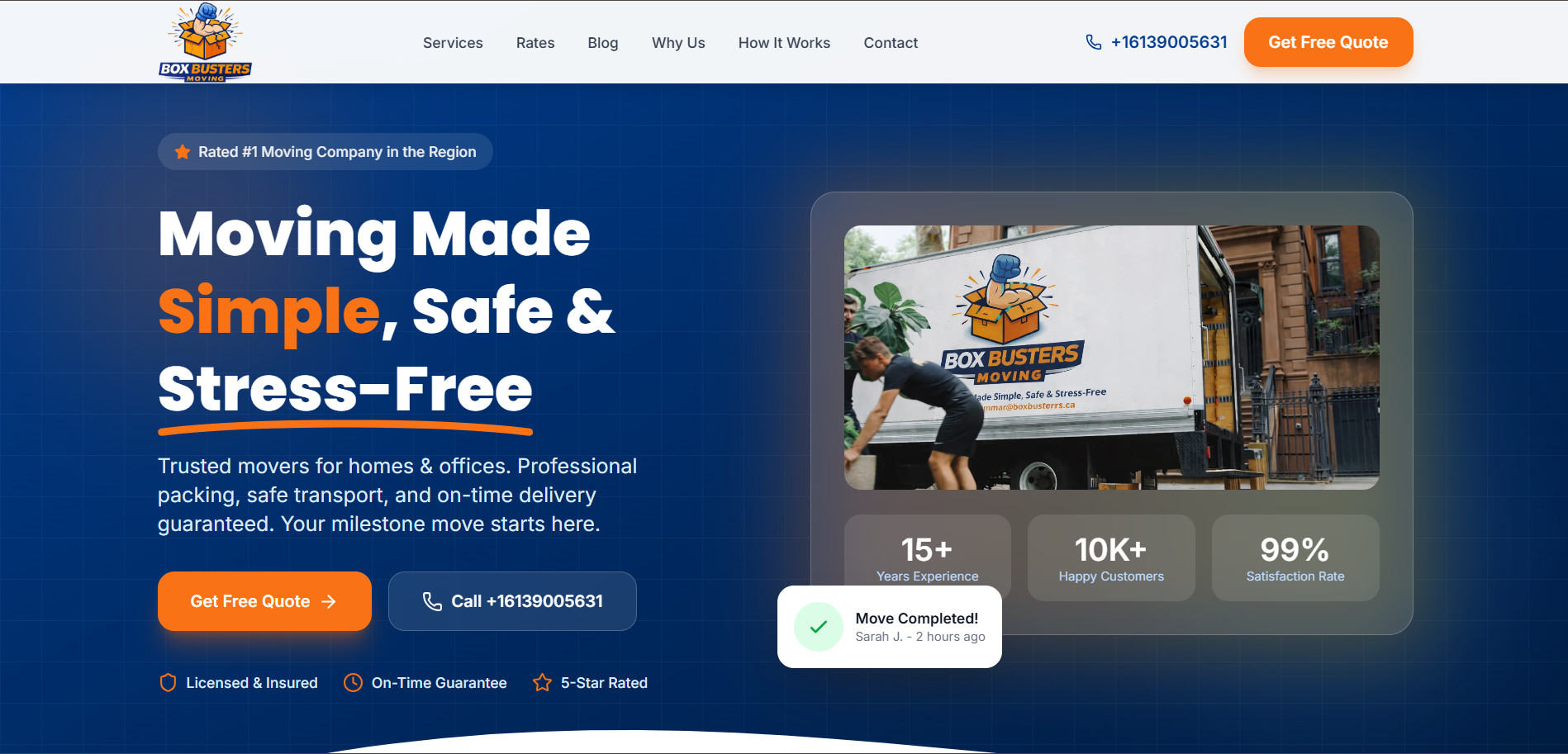 A modern website design for a packers and movers company.