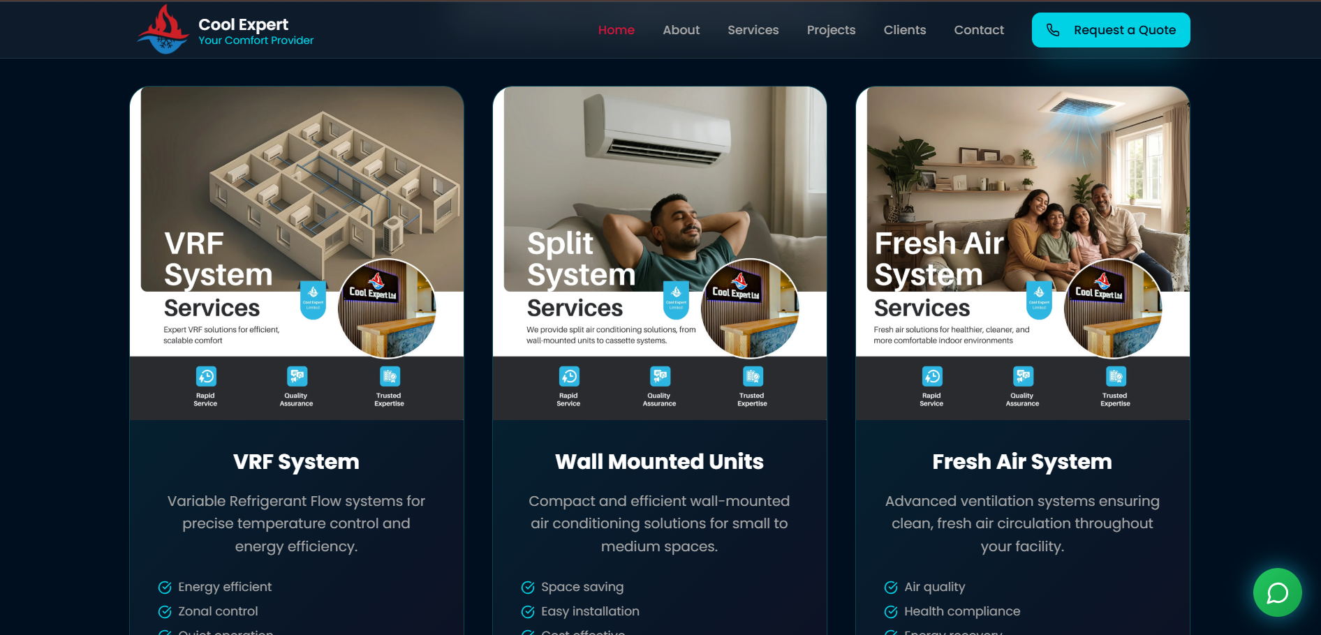 A modern dark themed website for expert services.